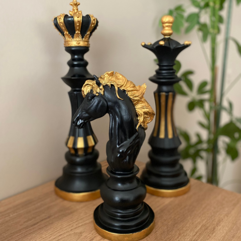 3'lü Şah Vezir At Satranç Seti Takımı Heykel Biblo